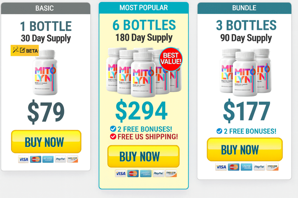 3 Bottles – 90-Day Supply: $177 total ($59 per bottle)Popular for those who want to give the formula enough time to support healthy mitochondria and metabolism. Often comes with free bonus guides.